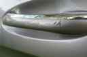Die Tür hat eine kleine Beule sowie mehrere leichte Kratzer....siehe Bilder.